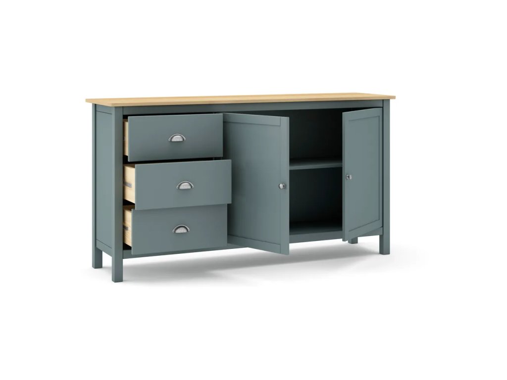 Barva Šedozelená Šířka 150 cm Výška 80 cm Hloubka 40 cm Váha 31.9 kg Nosnost 45 kg Výška nohou 8 cm Materiál Dřevo masiv Materiál konstrukce Masiv borovice Dekor Borovice Barva dřeva Světlé dřevo Povrchová úprava Lak Materiál nohou Masiv borovice Materiál poliček Masiv borovice Povrchová úprava poliček Lak Materiál zásuvky Masiv borovice, MDF Povrchová úprava zásuvky Lak Materiál úchytek Kov Materiál zadní části Dřevovláknitá deska Vlastnosti Se šuplíky, s dvířky, s poličkami, na nožičkách Péče Čistit vlhkým hadříkem nebo houbičkou, nepouživat agresivní a abrazivní čističe Systém zavírání Bez tlumení