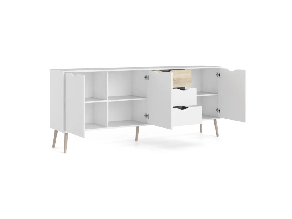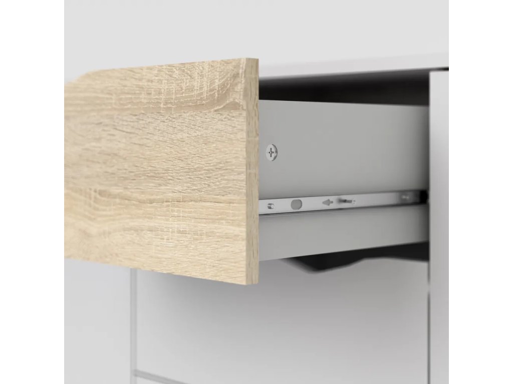 Barva Bílá Šířka 196 cm Výška 82 cm Hloubka 39 cm Váha 49.8 kg Výška nohou 20 cm Materiál Dřevotříska Dekor Matný Povrchová úprava Folie Materiál nohou Masiv dub Barva nohou Světlé dřevo Materiál zásuvky Dřevotříska Povrchová úprava zásuvky Folie Vlastnosti Se šuplíky, na nožičkách Péče Čistit suchým hadřikem, nepouživat agresivní a abrazivní čističe Systém zavírání Bez tlumení