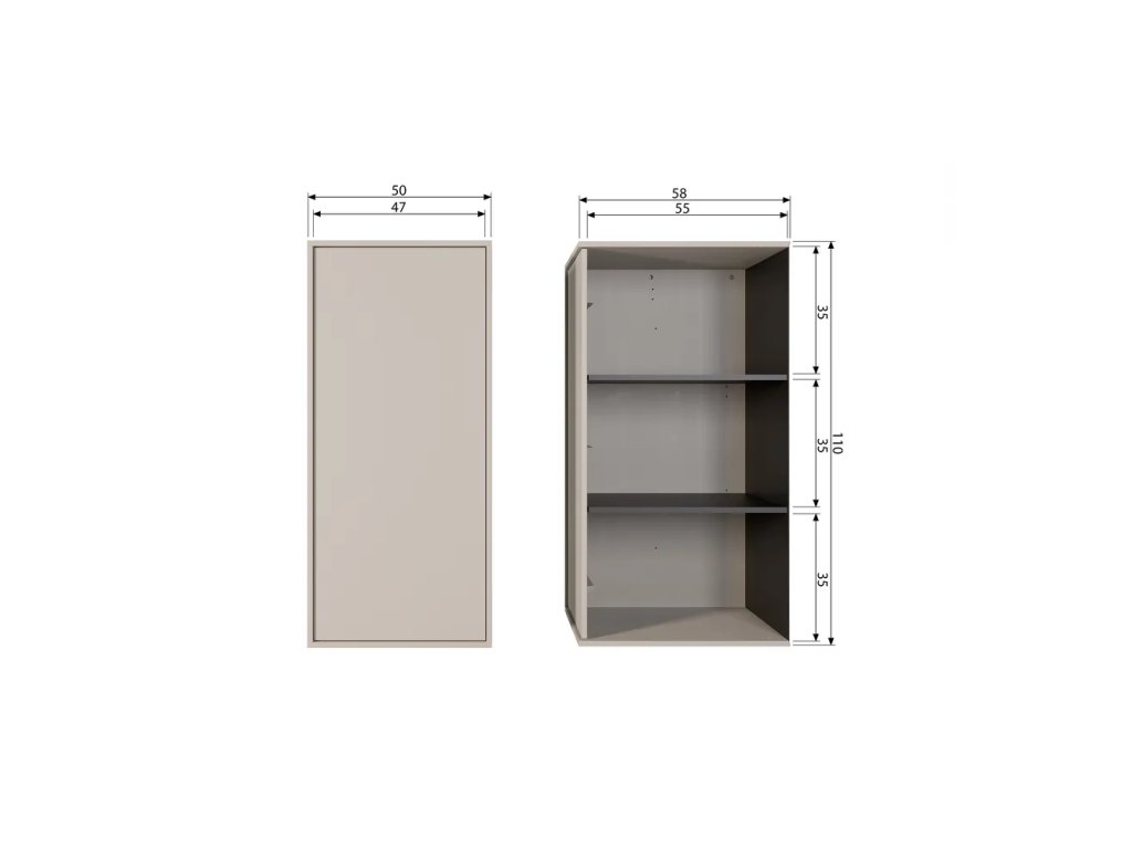 Barva SVĚTLĚ ŠEDÁ Šířka 50 cm Výška 110 cm Hloubka 58 cm Váha 19 kg Nosnost 10 kg Materiál Dřevo masiv Materiál konstrukce Masiv borovice Dekor Matný Povrchová úprava Barva Materiál poliček Dřevotříska Povrchová úprava poliček Lamino Materiál zadní části Dřevovláknitá deska Vlastnosti S dvířky, se skříňovou tyčí Péče Čistit vlhkým hadříkem nebo houbičkou, nepouživat agresivní a abrazivní čističe Systém zavírání Push to open (bezúchytkové otevírání) Typ skříně Uzavřená, s pantovými dveřmi