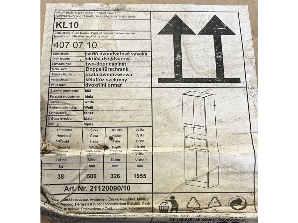 Skříň dvoudveřová vysoká KL10 bílá Nové