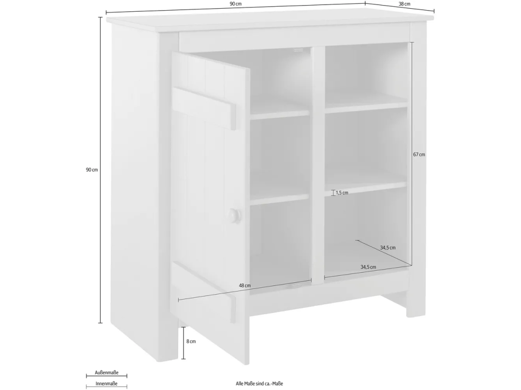 Barva Přírodní Šířka 90 cm Výška 90 cm Hloubka 38 cm Váha 22 kg Nosnost 50 kg Výška nohou 8 cm Materiál Dřevo masiv Materiál konstrukce Masiv borovice Dekor Borovice Barva dřeva Světlé dřevo Povrchová úprava Vosk Materiál nohou Masiv borovice Vlastnosti S dvířky, s poličkami, na nožičkách Péče Čistit suchým hadřikem, nepouživat agresivní a abrazivní čističe Systém zavírání Soft close (tiché dovírání)Doplňkové parametry