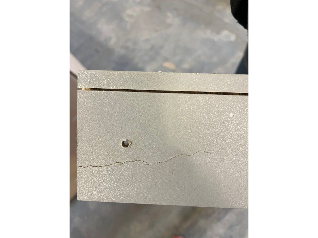 Uzamykatelná skříňka Prima na kolečkách Poškozené, poškozený roh z vnitřní strany a prasklina na šuplíku z vnitřní strany