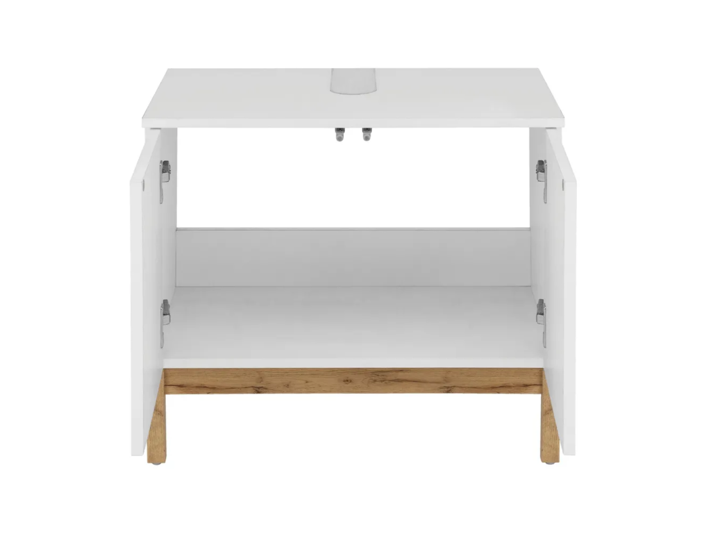 Barva Bílá Šířka 60 cm Výška 56 cm Hloubka 35 cm Váha 13 kg Nosnost 10 kg Výška nohou 15.5 cm Materiál MDF Dekor Dub Povrchová úprava Folie Materiál nohou MDF Barva nohou Světlé dřevo Materiál poliček MDF Povrchová úprava poliček Folie Materiál dvířek MDF Povrchová úprava dvířek Folie Vlastnosti S dvířky, s poličkami Péče Čistit vlhkým hadříkem nebo houbičkou, nepouživat agresivní a abrazivní čističe Systém zavírání Push to open (bezúchytkové otevírání) Typ Bez umyvadla, bez baterie