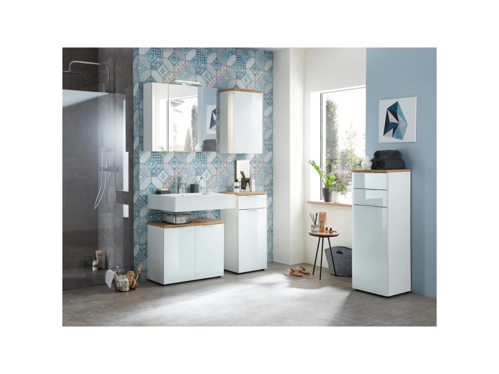 Praktická skříňka pod umyvadlo Germania Pescara kombinuje moderní design s funkčností. Bílá barva s dekorem dubu v karamelové barvě dodá vaší koupelně elegantní vzhled a zajistí dostatek úložného prostoru.