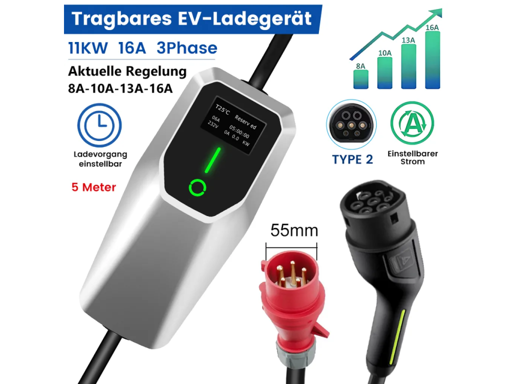 Přenosná nabíječka pro elektromobil Type 2 5m 11KW Nové