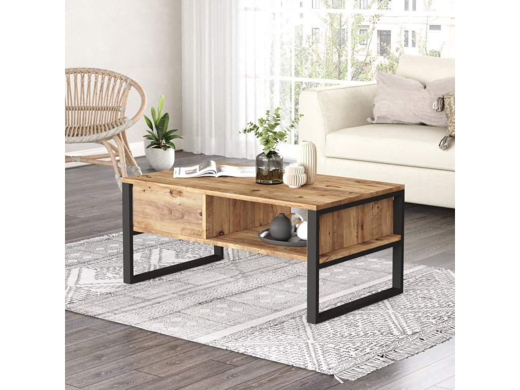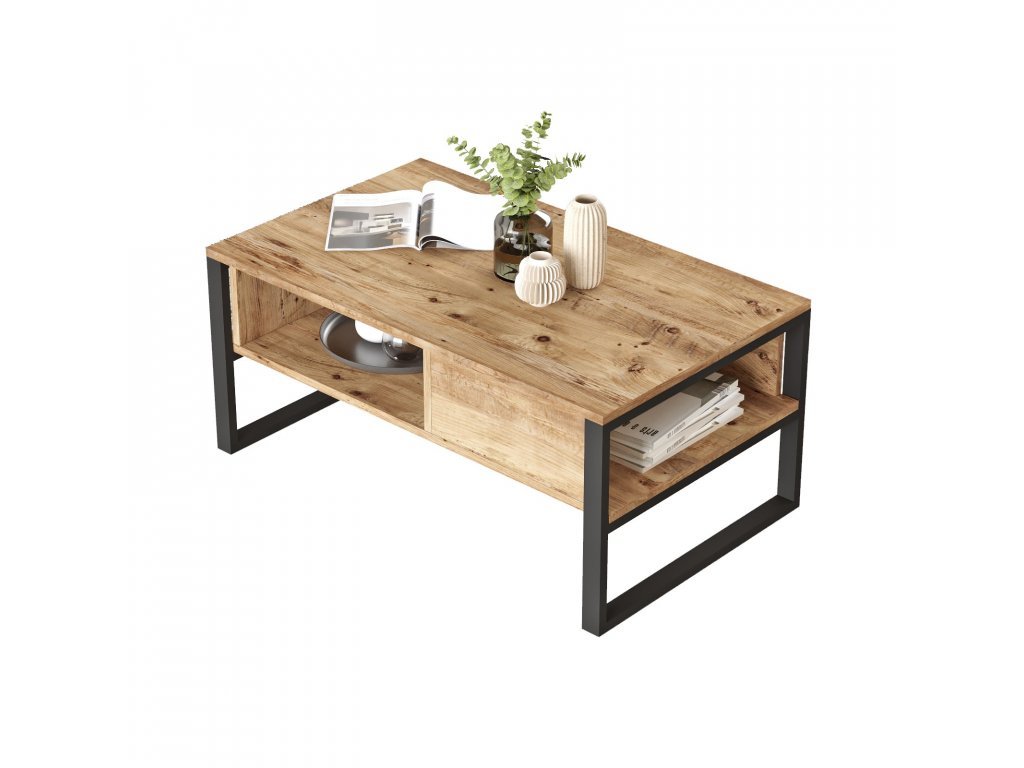 Dvoupatrový konferenční stolek ML34 je vyrobený ze dvou desek v dekoru borovice atlantic, které jsou zajímavým způsobem usazené nad sebou v kovových černých postranních rámech. ML34 je konferenční stolek, který může být tím vhodným doplňkem možná i do Vašeho obývacího pokoje nebo do pracovny. Je vyroben z černého kovového rámu a z 18 mm silných desek pokrytých 100 % melaminem v dekoru borovice atlantic. Rozměry: Šířka: 100 cm Hloubka: 59,7 cm Výška: 44,4 cm