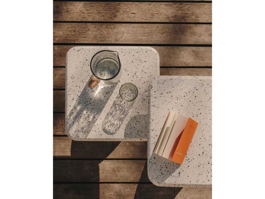 Barva Bílá Délka 48 cm Šířka 48 cm Výška 35 cm Váha 26.5 kg Tvar Čtvercový Materiál desky stolu Kámen Specifický materiál desky stolu Terrazzo cement Dekor Matný Materiál nohou Ocel, terrazzo cement Barva nohou Bílá Péče Čistit vlhkým hadříkem nebo houbičkou, nepouživat agresivní a abrazivní čističe