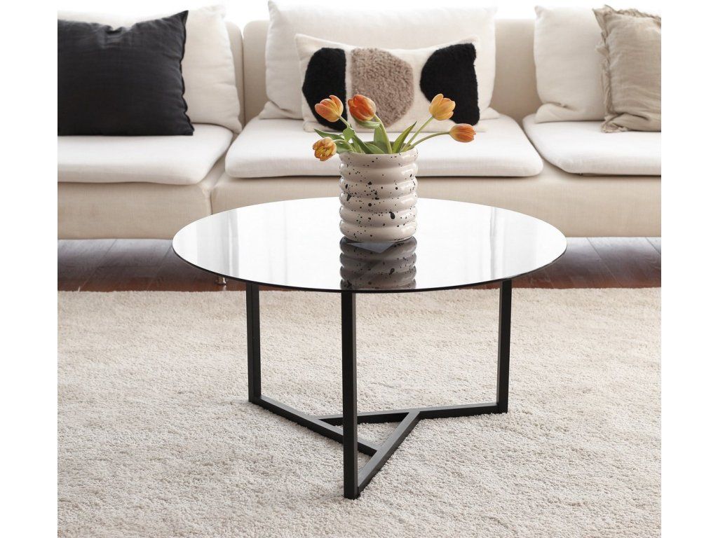 Technické specifikace: Šířka 75 cm, výška 42 cm, hloubka 75 cm, hmotnost 11 kg. Materiál: tvrzené sklo a lakovaný kov v černé barvě.