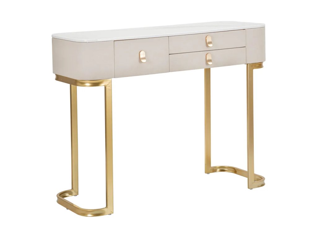 Délka 100 cm Šířka 40 cm Výška 80 cm Váha 15 kg Nosnost 35 kg Tloušťka 1.5 cm Materiál desky stolu Kámen Materiál nohou Železo Barva nohou Zlatá Materiál zásuvky Dřevovláknitá deska, látka Péče Čistit vlhkým hadříkem nebo houbičkou, nepouživat agresivní a abrazivní čističe. Obal poškozen