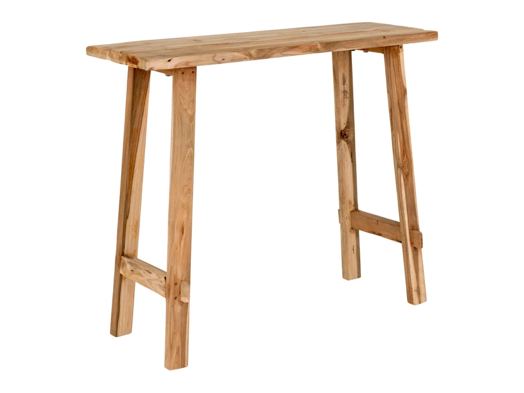 Barva Přírodní Délka 90 cm Šířka 30 cm Výška 80 cm Váha 8.2 kg Nosnost 10 kg Výška nohou 23 cm Tloušťka 2 cm Materiál desky stolu Dřevo masiv Specifický materiál desky stolu Masiv teak Povrchová úprava Olej Materiál nohou Masiv teak Barva nohou Světlé dřevoDoplňkové parametry