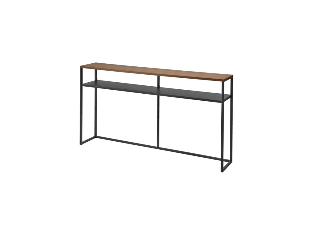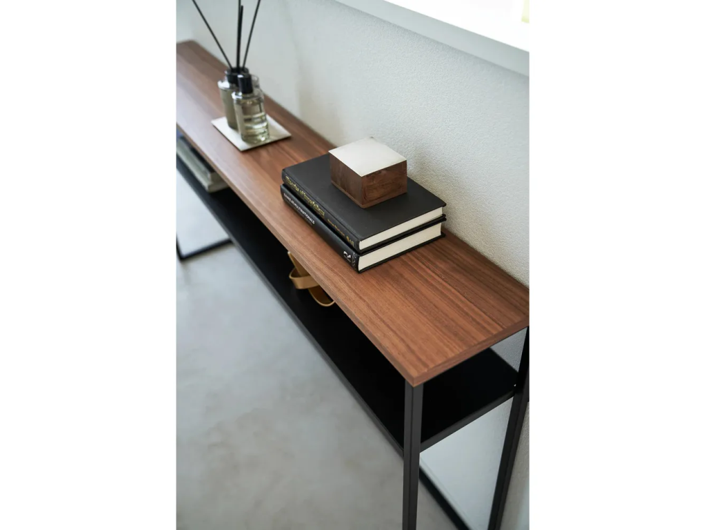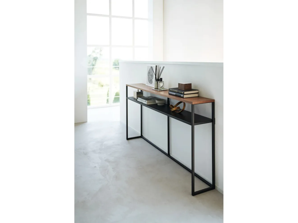 Konzolový stolek od značky Yamazaki je ideální ke stěně nebo jako přídavný úložný prostor za pohovku. Minimalistická kovová konstrukce je doplněna o dýhovanou horní desku v dekoru jasanu, takže se bude skvěle hodit do všech moderních interiérů.