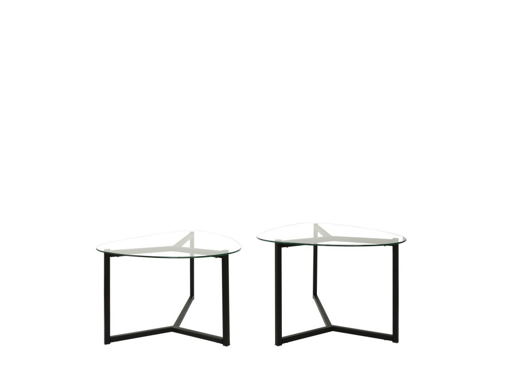 Specifikace: Materiál desky - tvrzené sklo, konstrukce - černý kov, rozměry - 82x58x40/36 cm, hmotnost - 30 kg. Stolky jsou dodávány jako kompletní sada dvou kusů.