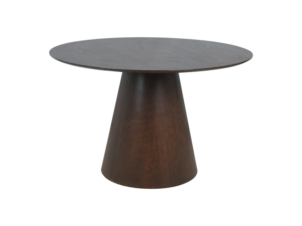 Specifikace: Materiál MDF, dekor ořech, barva tmavé dřevo, tvar kulatý, hmotnost 58 kg. Stůl není rozkládací, což zajišťuje maximální stabilitu.
