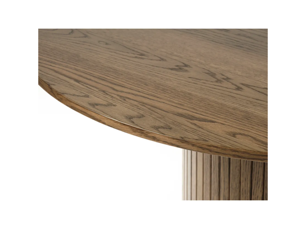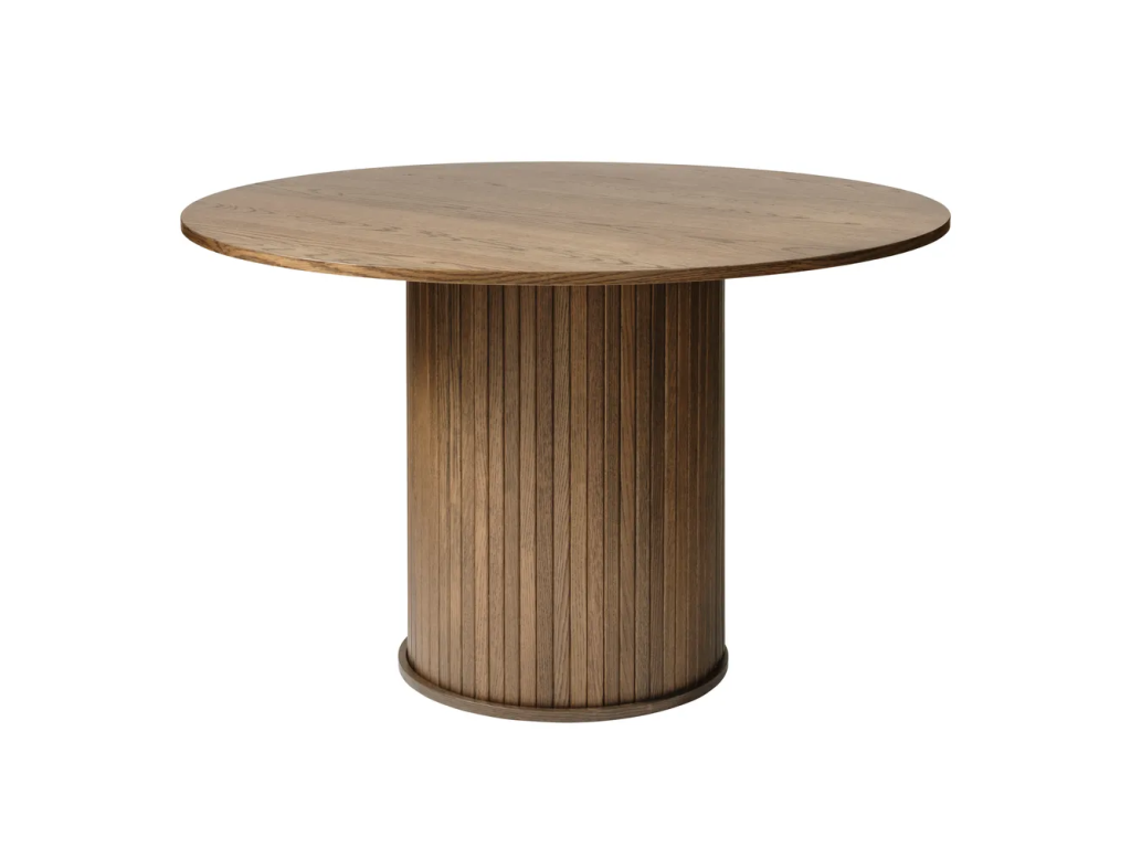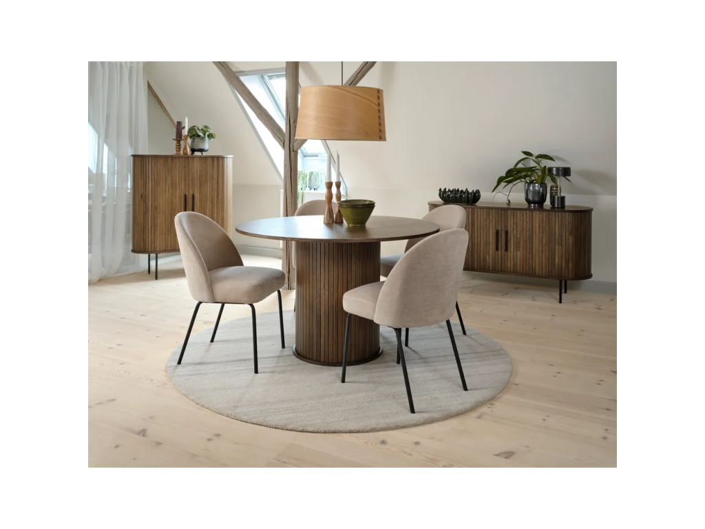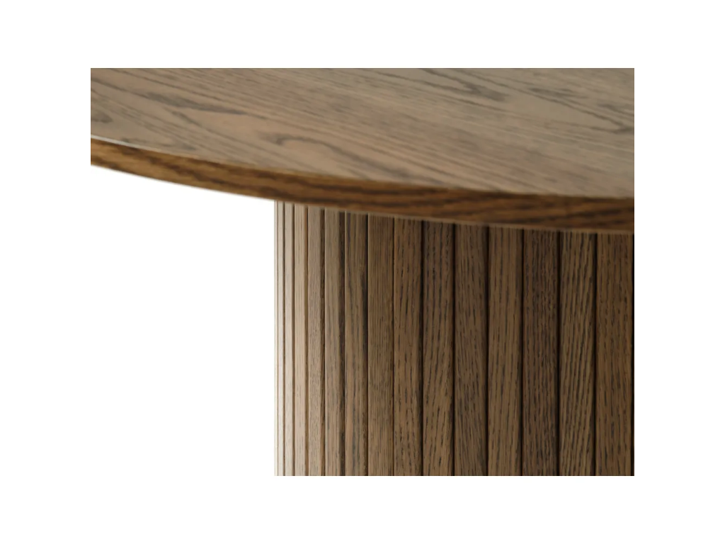 Jídelní stůl Nola od Unique Furniture je elegantní kulatý stůl s průměrem 120 cm, který se stane dominantou každé jídelny. Vyrobený z kvalitního MDF s krásným dekorem tmavého dubu a dýhovaným povrchem nabízí dokonalou kombinaci stylu a funkčnosti.