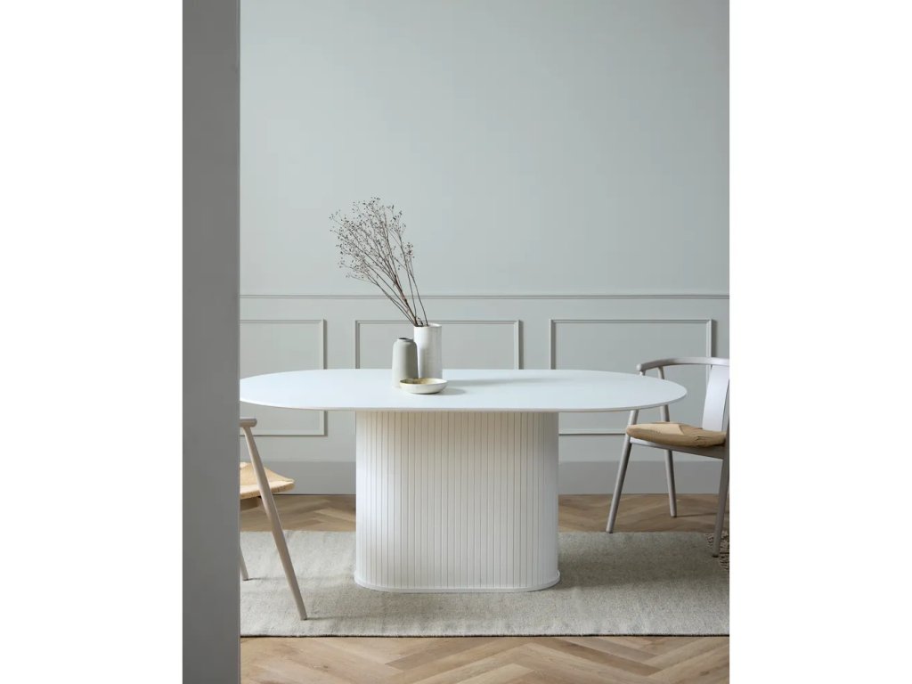 Barva Bílá Počet osob Pro 4, pro 6 Délka 180 cm Šířka 95 cm Výška 75 cm Váha 79.3 kg Nosnost 40 kg Výška nohou 69.6 cm Tvar Oválný Tloušťka 1.8 cm Materiál desky stolu MDF Dekor Dub, matný Povrchová úprava Dýha, melamin Materiál nohou MDF Barva nohou Bílá Rozkládací Ne Péče Čistit vlhkým hadříkem nebo houbičkou, nepouživat agresivní a abrazivní čističe