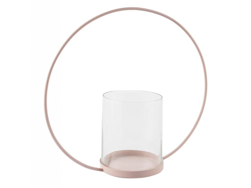 - Matně růžový kulatý tvar se skleněným větrným světlem dodává styl