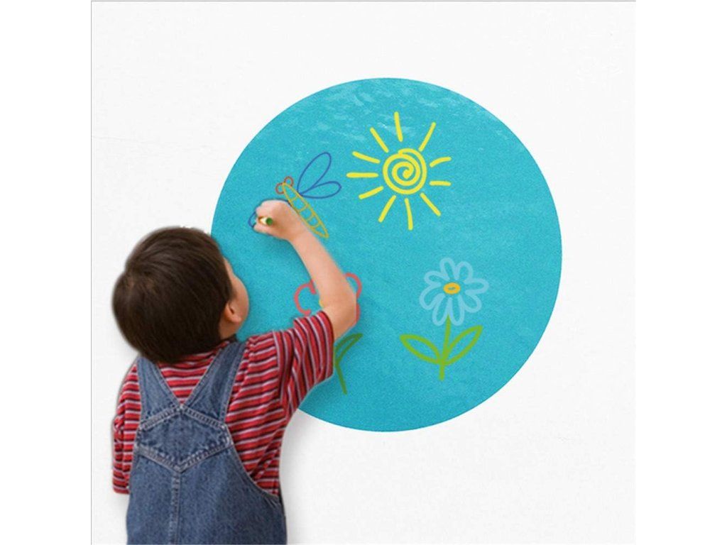 Barevné samolepící kruhy z vinylu přemění libovolnou hladkou plochu v praktickou kreslící/tabulní plochu pro děti i dospělé. Velký průměr 28 cm poskytuje dostatek prostoru pro psaní i malování, materiál je voděodolný a lze ho opakovaně mazat suchým hadříkem.