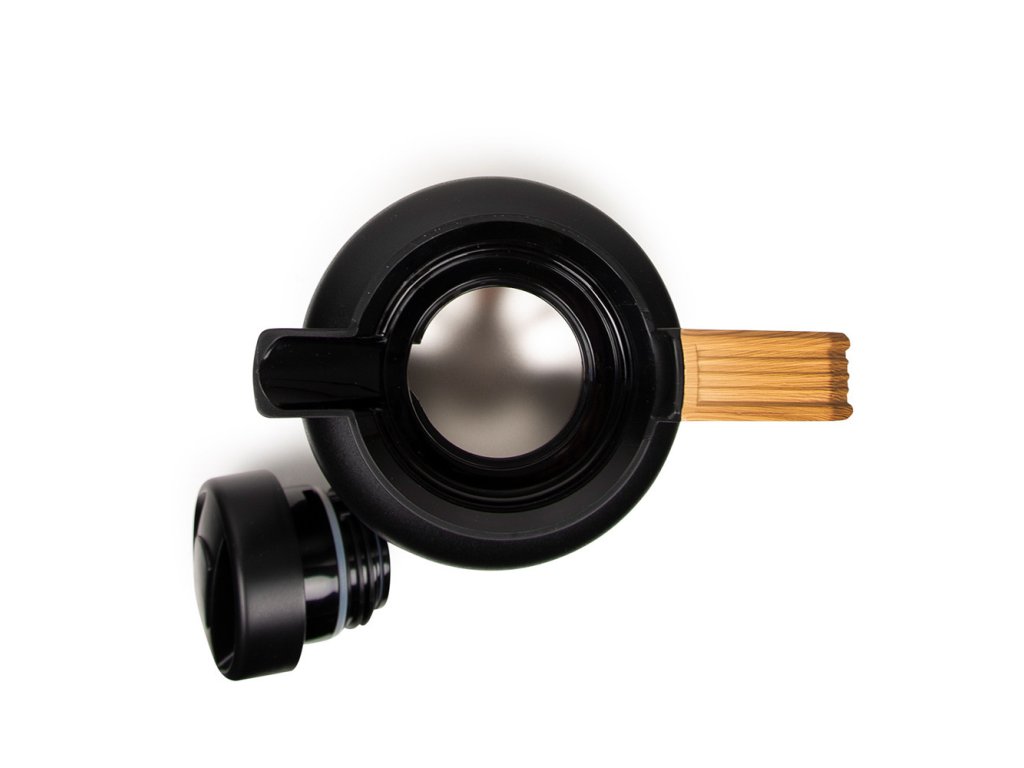 Matně černá konvice a unikátní zkosená dřevěná rukojeť zajišťují pohodlný úchop. Tato atraktivní termoska má objem 2 litry , takže je ideální pro servírování teplých nápojů na večírcích nebo setkáních. Tyto velké termosky jsou ideální po celý rok, ať už si vychutnáváte zimní kávu na letním pikniku. Dvoustěnná termoska z nerezové oceli se šroubovacím víčkem udrží nápoje teplé po dobu 12 hodin a studené nápoje vychlazené po dobu 24 hodin.