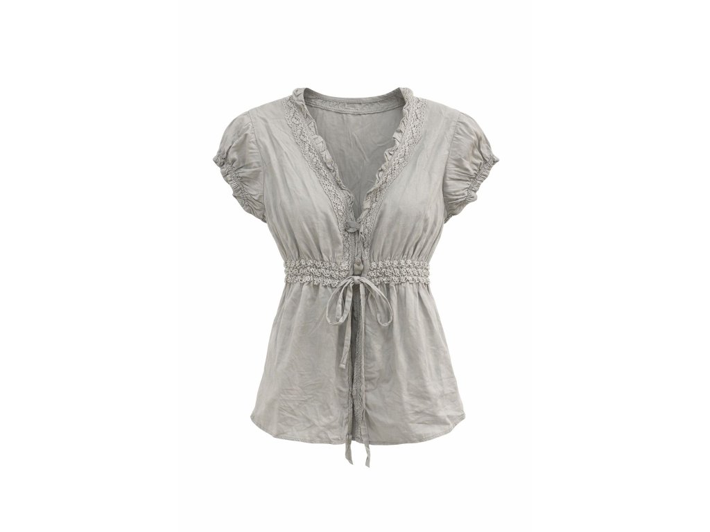 Dámská halenka s krajkou a zavazování - šedá Nové zboží