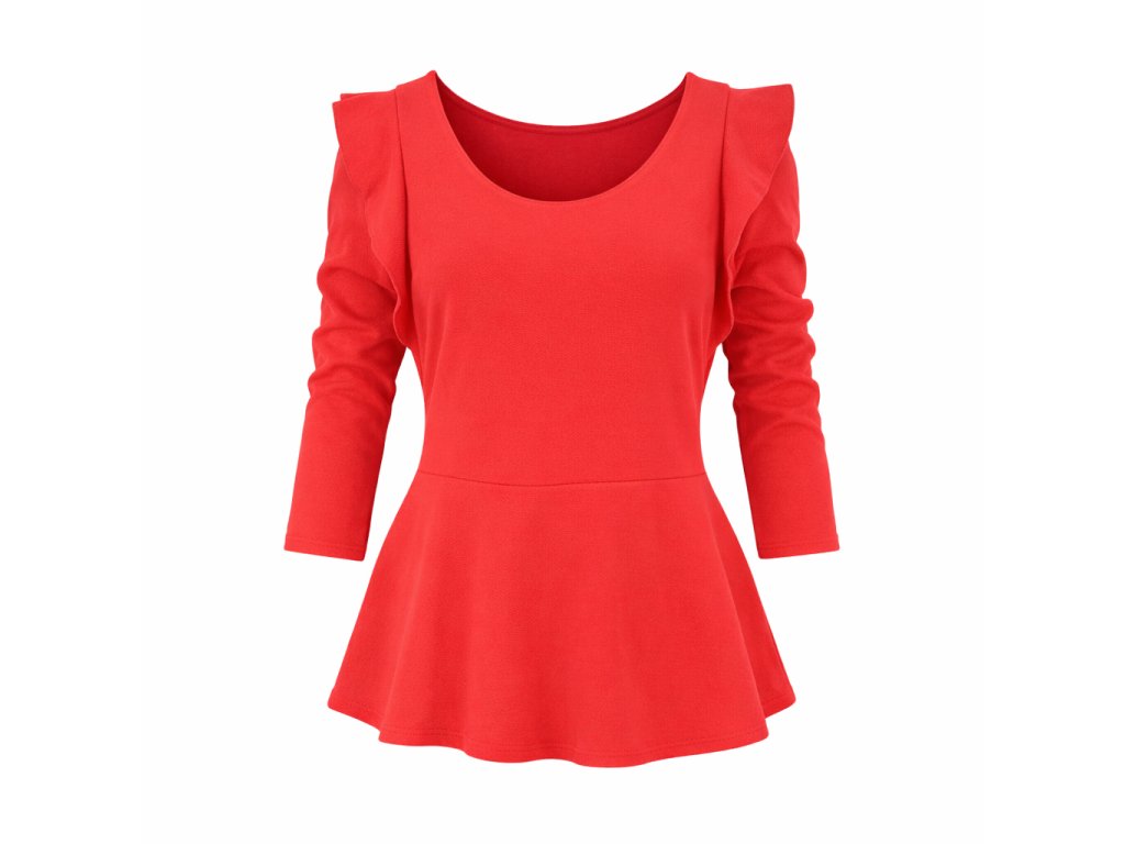 - ozdobné volány na ramenou a kolem rukávů