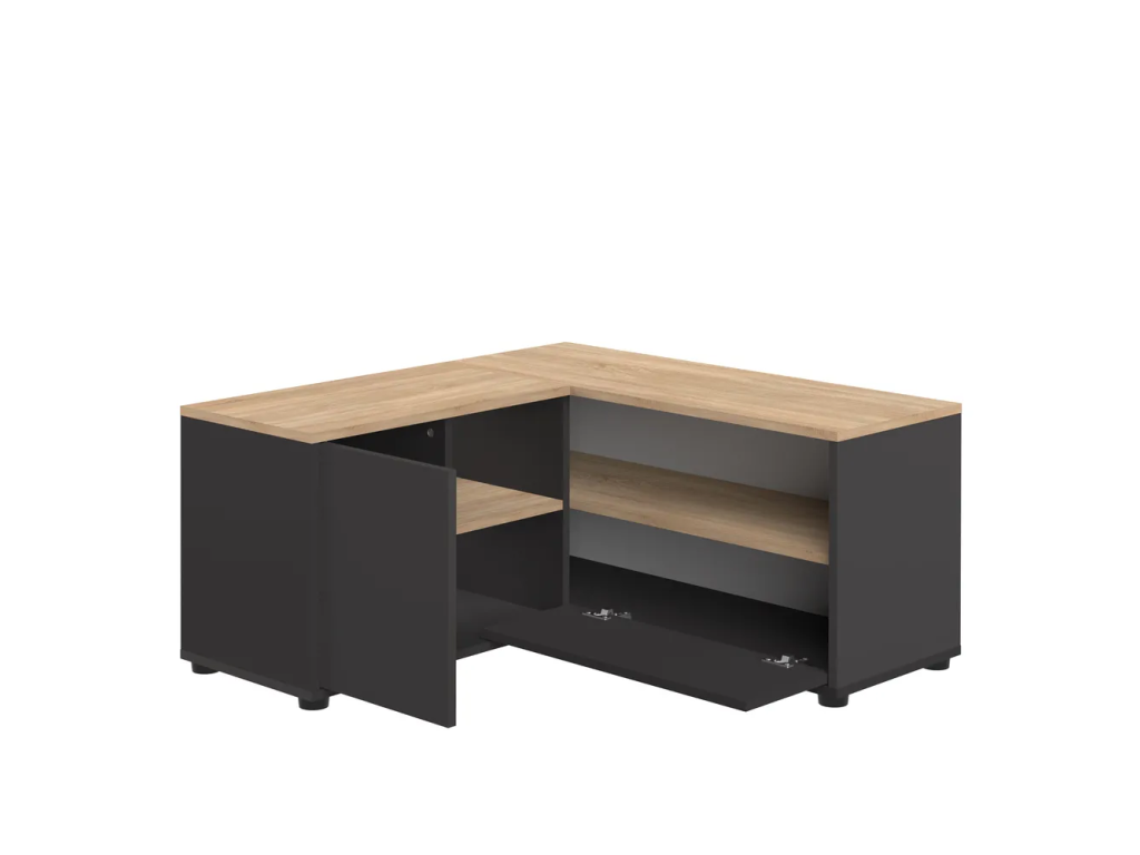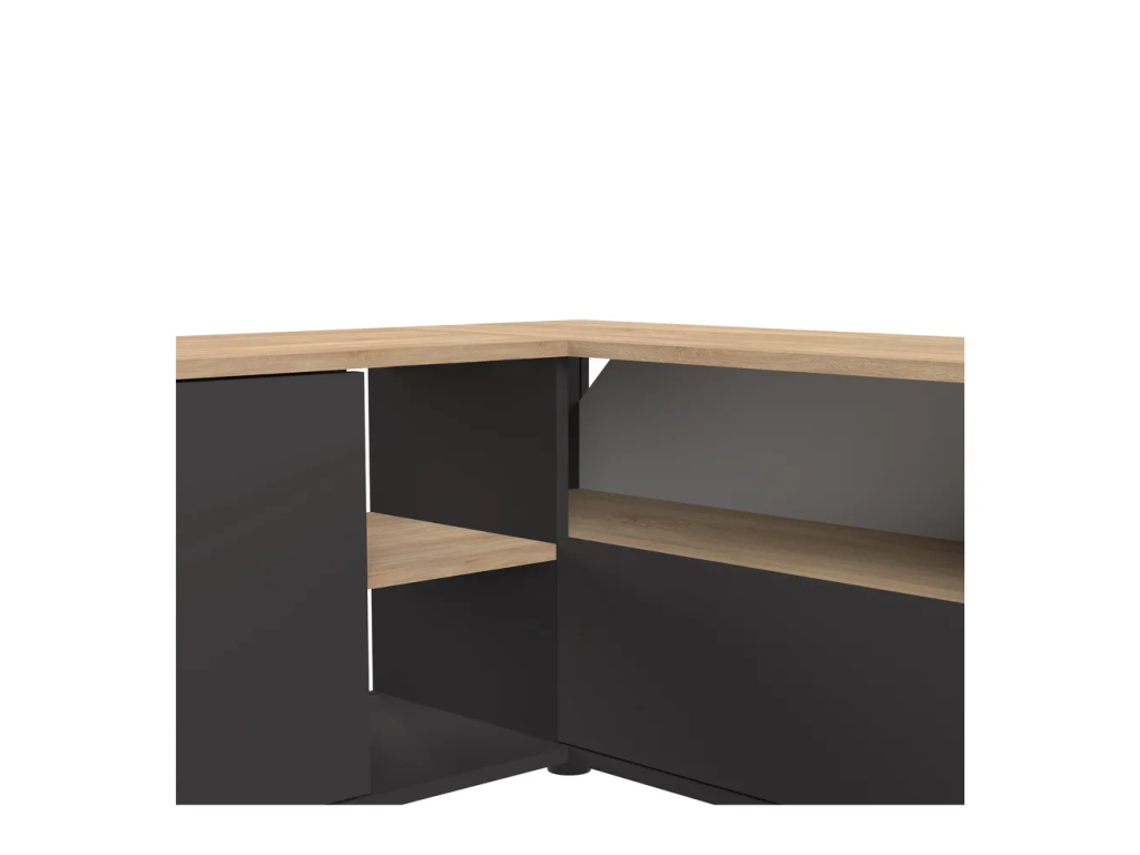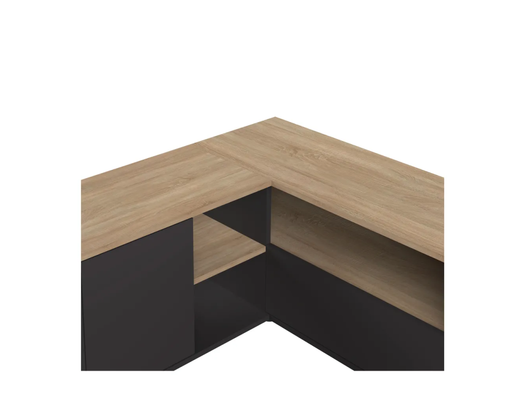 TV stolek Angle od značky TemaHome je praktické rohové řešení pro váš obývací pokoj. Kombinace černé barvy s dekorem světlého dubu vytváří moderní a elegantní vzhled, který se hodí do různých interiérových stylů.