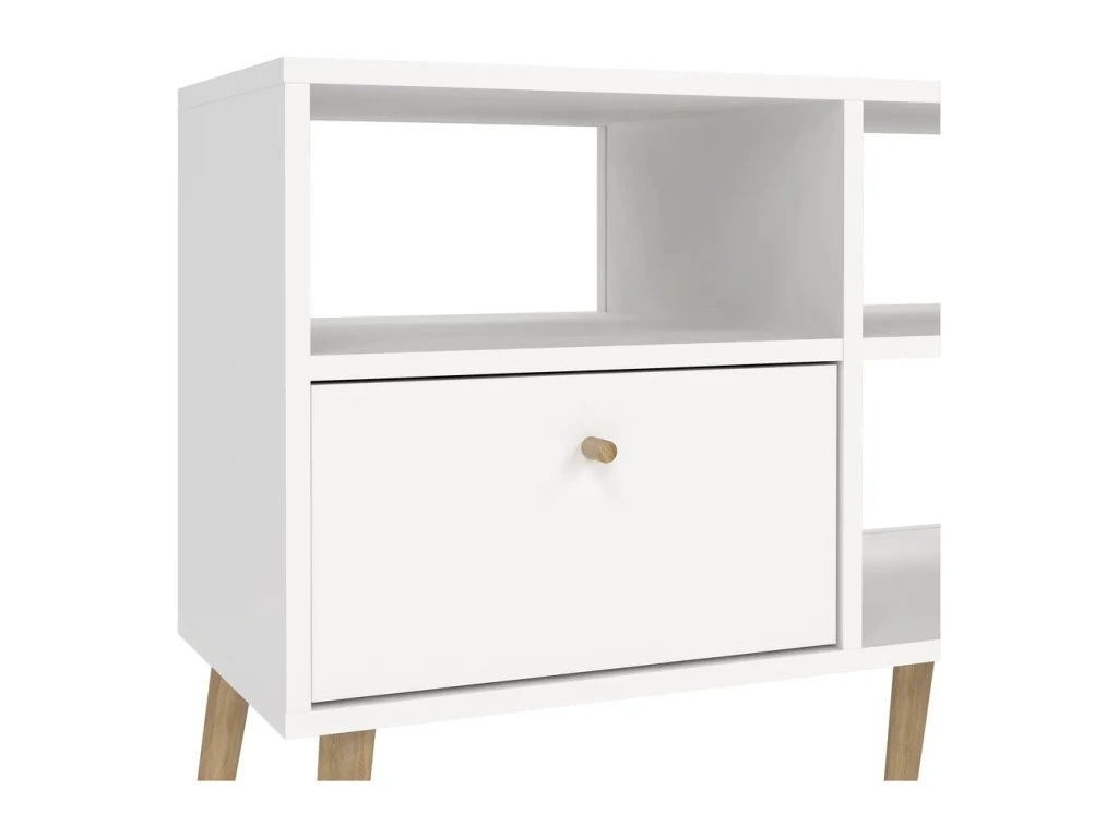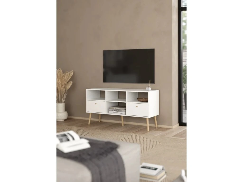 Barva Bílá Šířka 117.2 cm Výška 60.8 cm Hloubka 39.1 cm Váha 23.9 kg Nosnost 52 kg Výška nohou 21 cm Materiál Dřevotříska Dekor Matný Povrchová úprava Folie Materiál nohou Masiv dub Barva nohou Světlé dřevo Materiál úchytek Dřevo Materiál zadní části Dřevovláknitá deska Vlastnosti Se šuplíky, s poličkami, na nožičkách Péče Čistit suchým hadřikem, nepouživat agresivní a abrazivní čističe Systém zavírání Bez tlumení