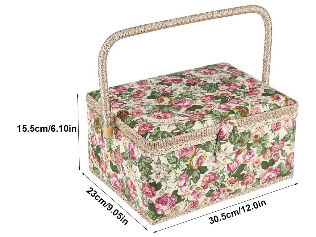 Úložná krabička na šicí potřeby s držadlem, květinový potah Nové
