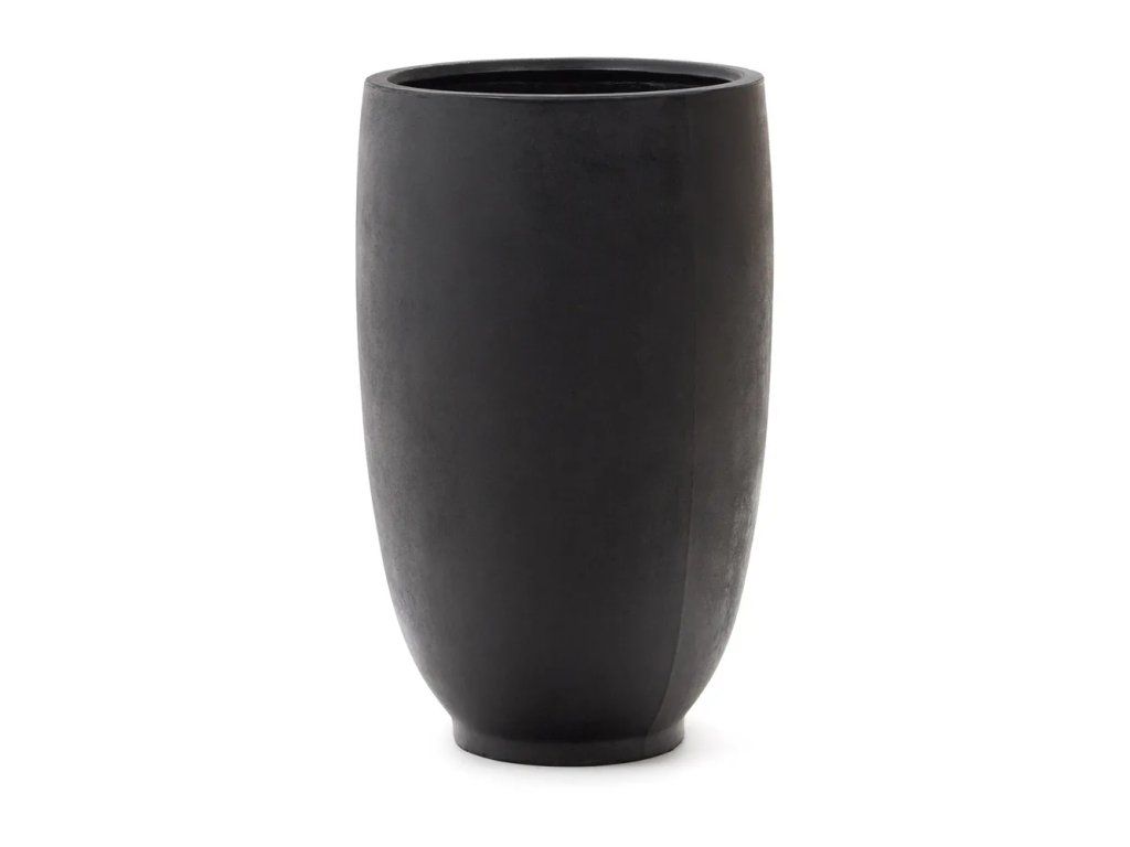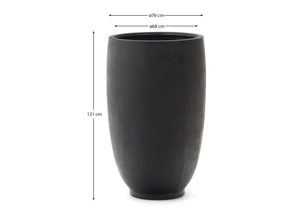 Specifikace: Průměr 75 cm, výška 120 cm, váha 45 kg, materiál cement, barva černá, s odtokovým otvorem pro správné odvodnění rostlin.