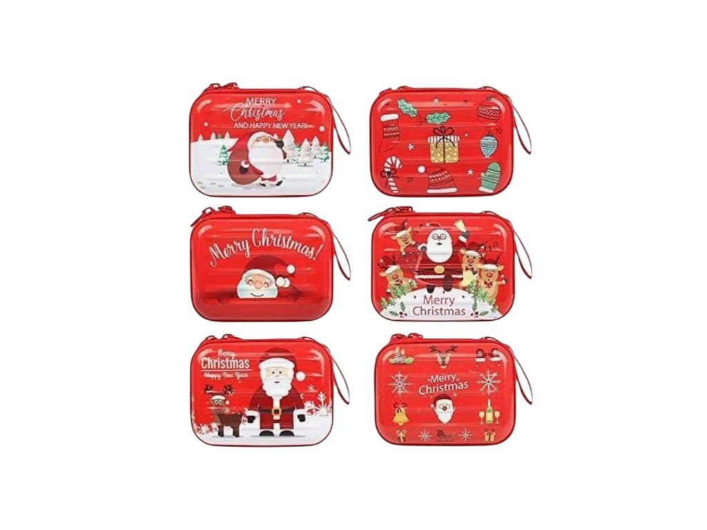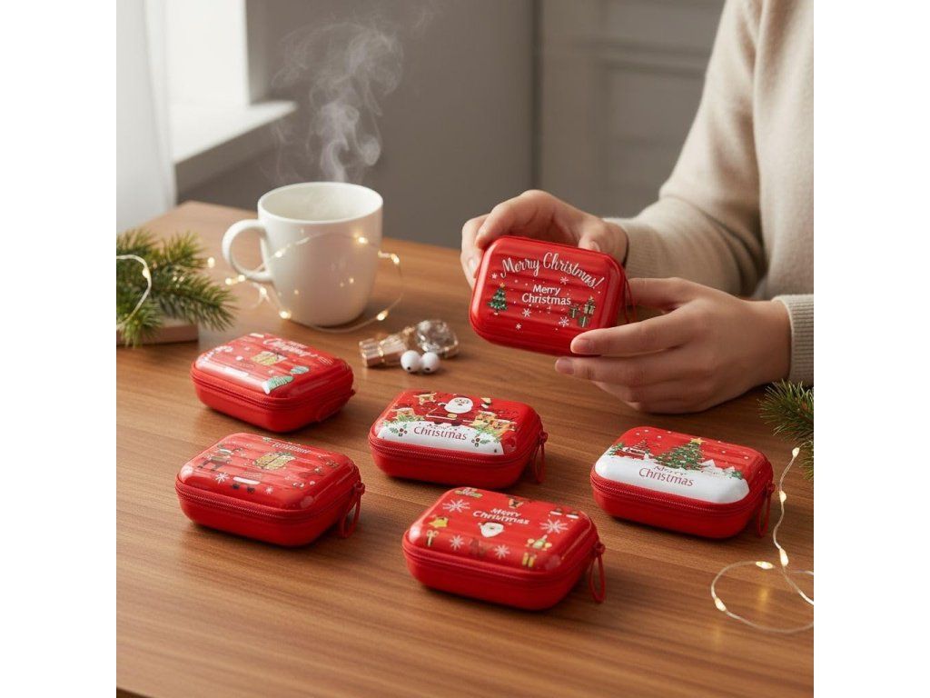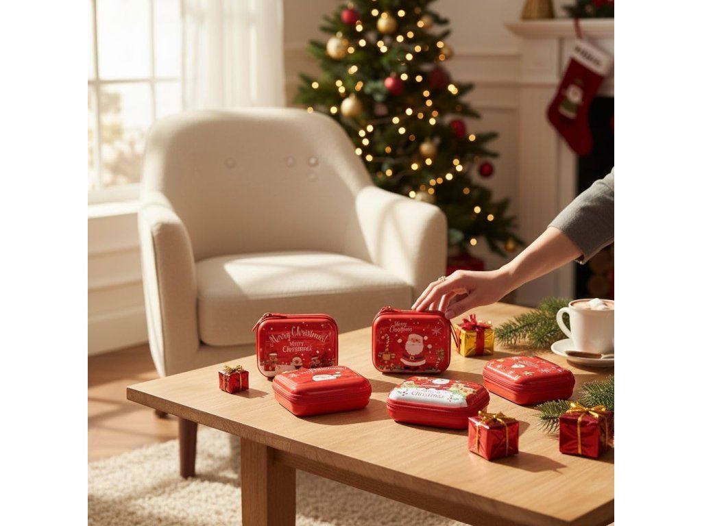 Okouzlující červená kosmetická krabička od značky LIGHTER HOUSE přináší vánoční atmosféru do vaší každodenní péče o krásu. Tato praktická kovová krabička je zdobená rozkošnými zimními scénami se Santa Clausem, sobami, sněhovými vločkami a slavnostními vánočními dekoracemi.