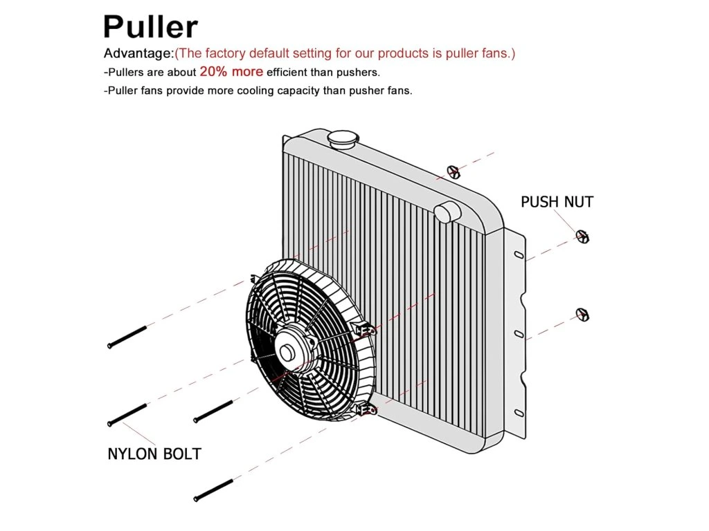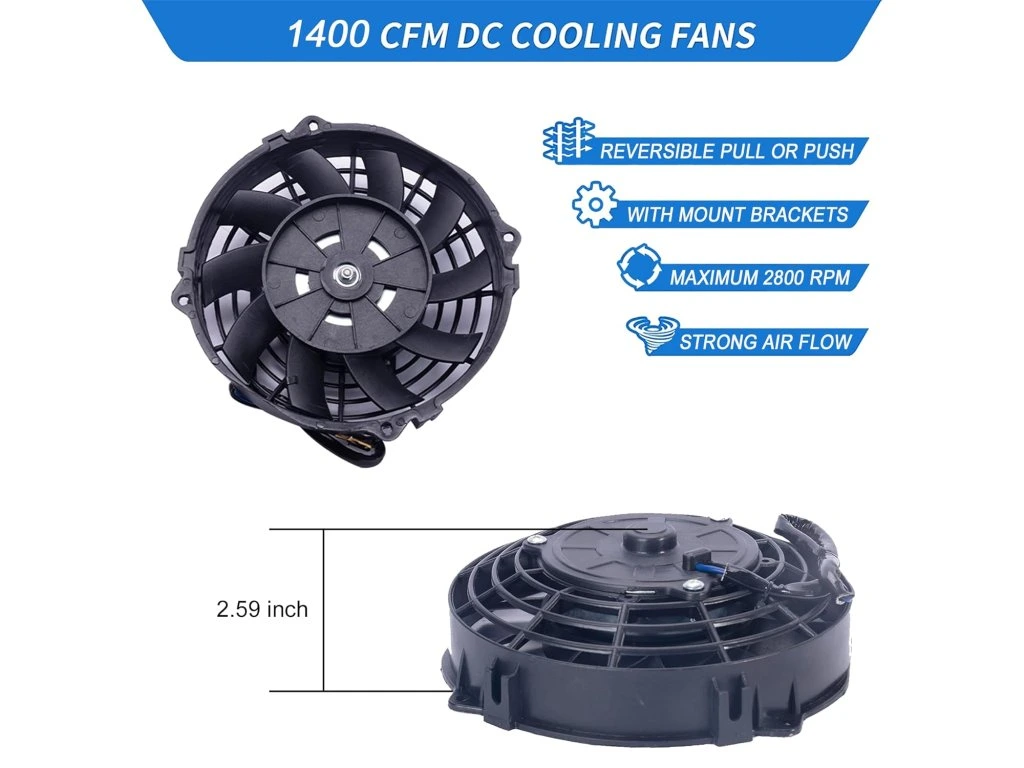 Výkonný a univerzální 7palcový elektrický ventilátor chladiče nabízí výrazné zlepšení proudění vzduchu a ochlazení motoru i souvisejících systémů, přitom se vejde i do stísněných míst díky nízkému profilu.