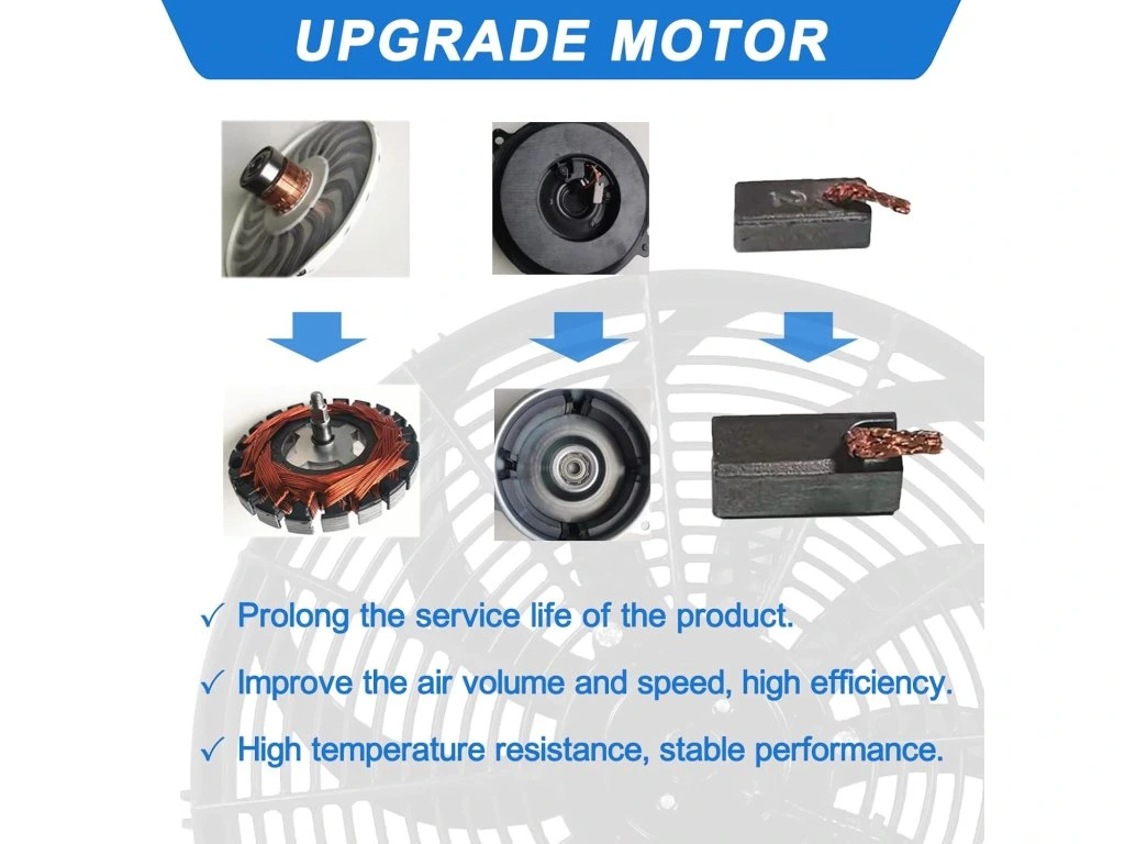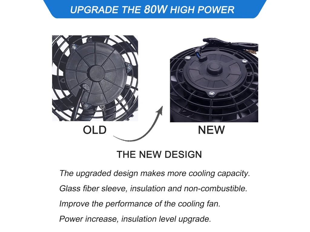- Výkon: 12 V, 80 W motor s maximálním průtokem vzduchu až 1400 CFM pro efektivní chlazení.