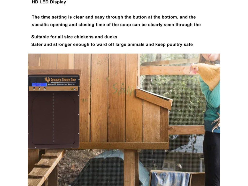 Automatická dvířka do kurníku s časovačem a LED displejem Nové