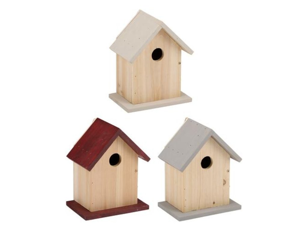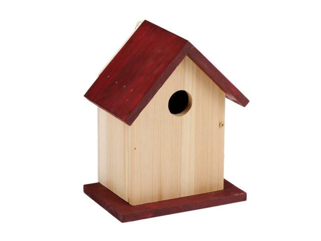 Otvor v přední části chrání před nebezpečím a teplo uvnitř. Otvorem můžete také dát jídlo do domu. Ideální pro malé ptáky ve vaší zahradě! Ptačí budka je vyrobena z měkkého dřeva a se svou barevnou střechou se hodí do každé zahrady.
