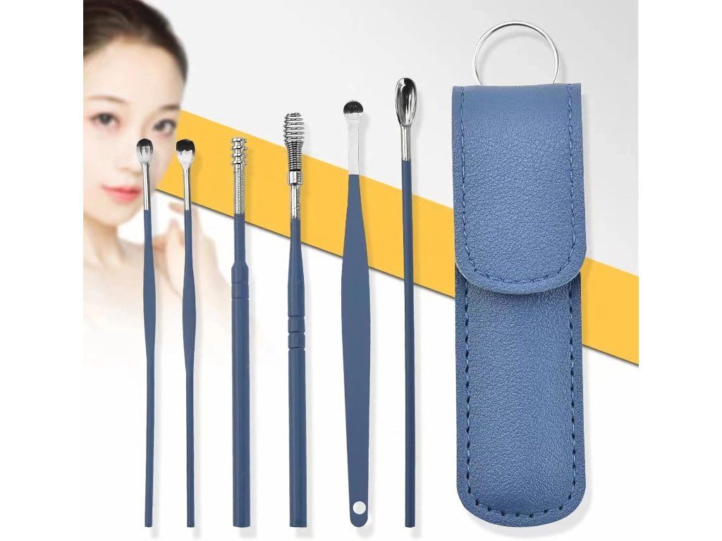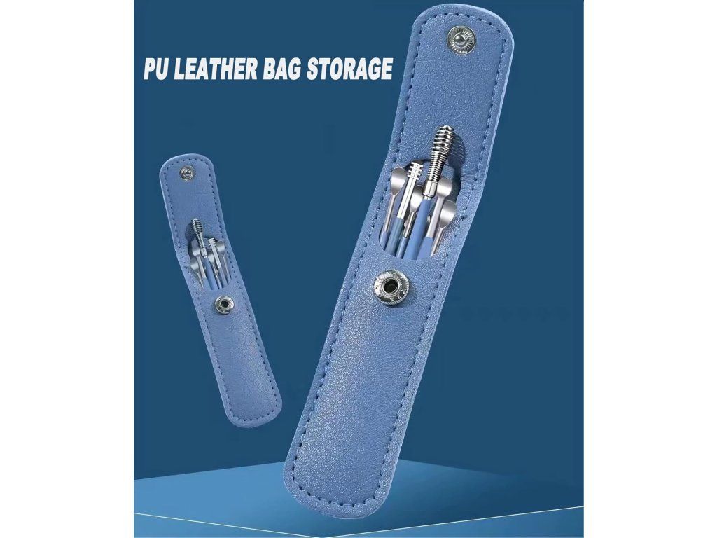 Sada 12 nerezových nástrojů na čištění uší s koženým pouzdrem (modrá/zelená) Nové