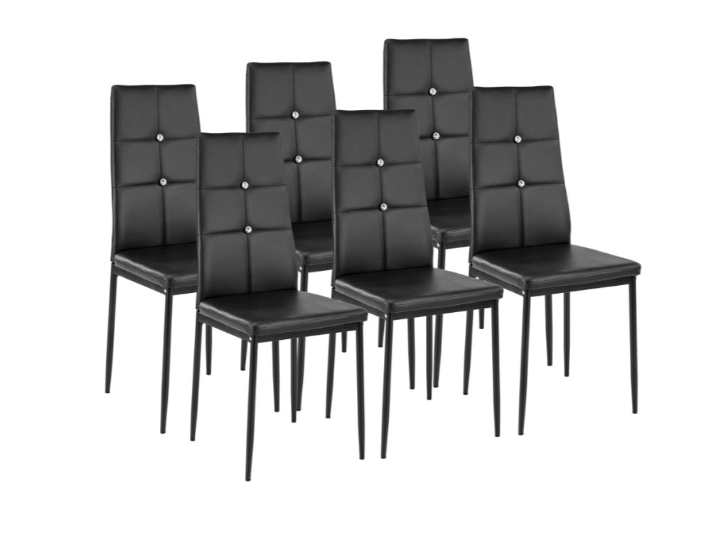 6 Jídelních židlí, ozdobné kamínky černá Rozbaleno
