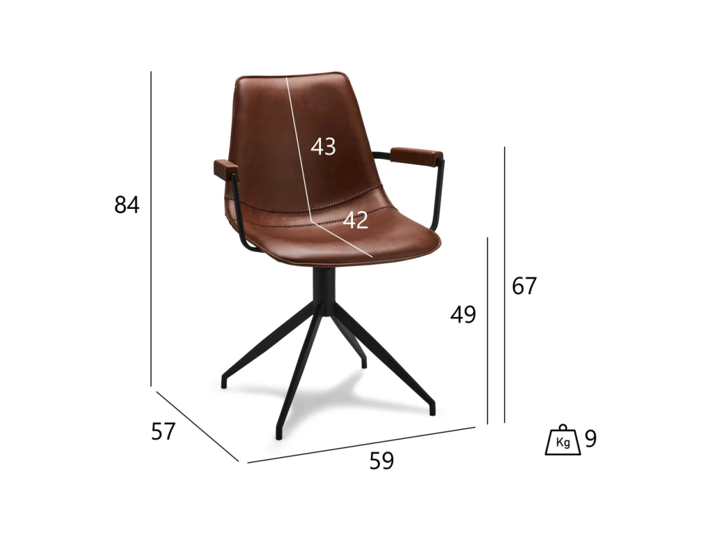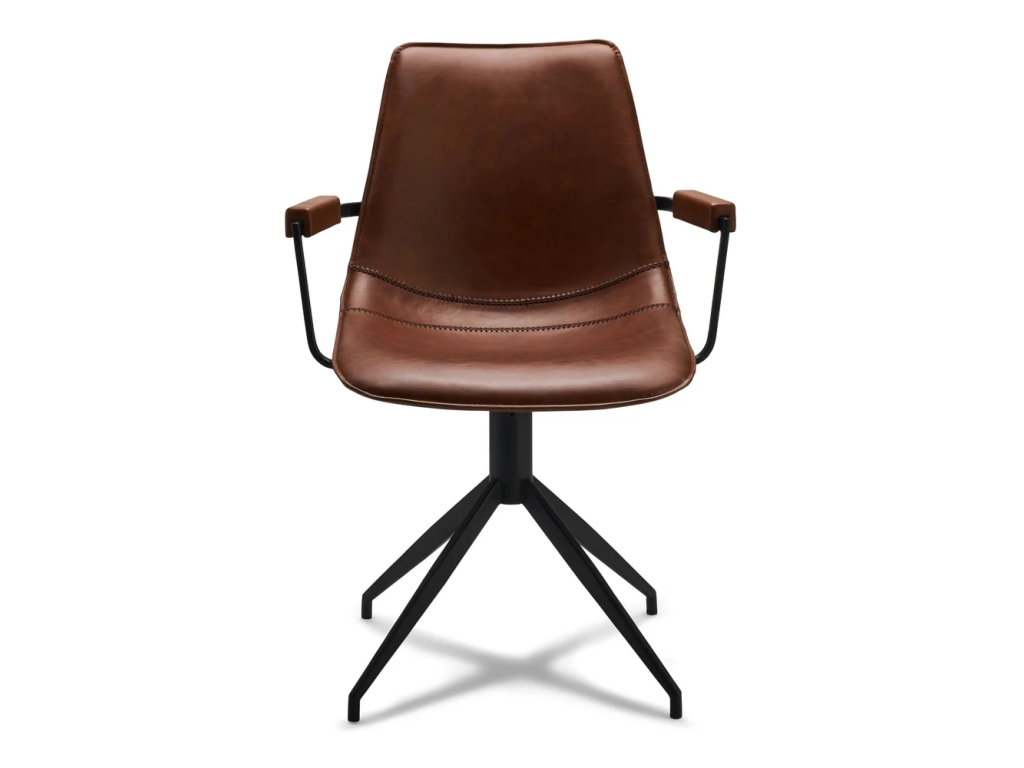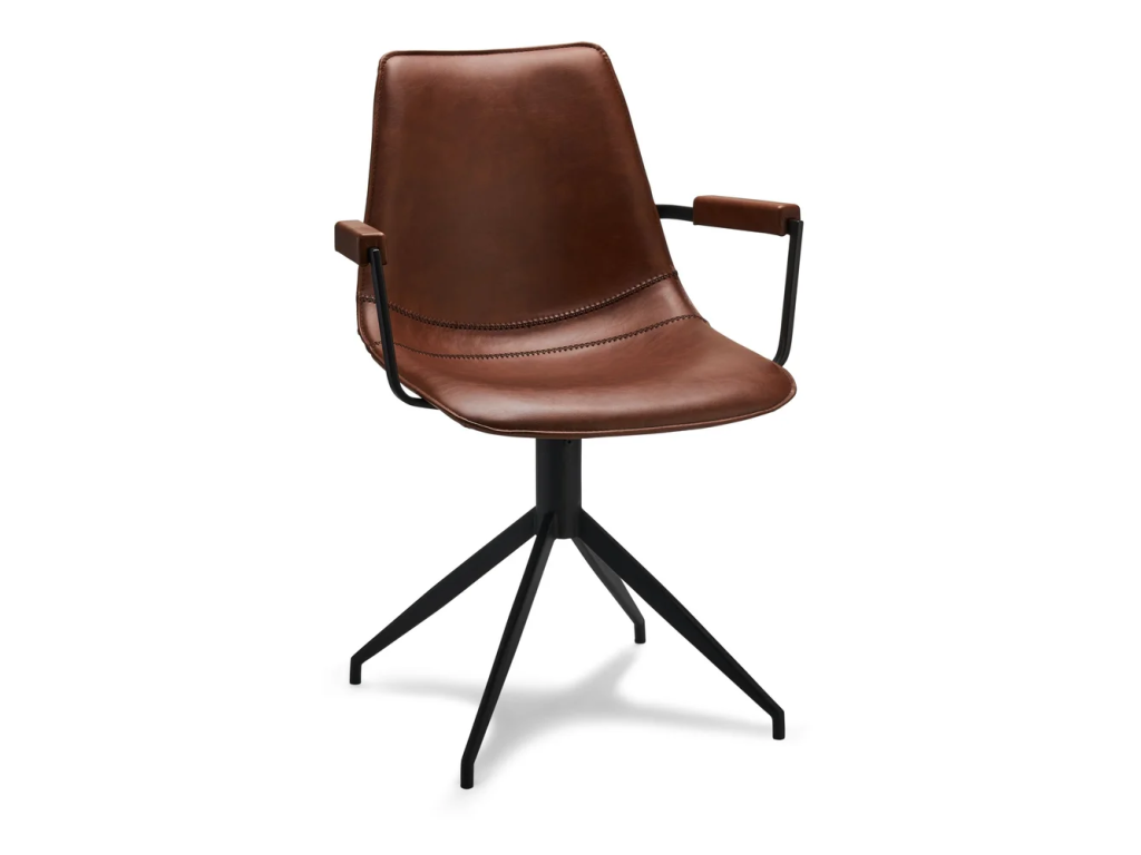 Stylové jídelní židle Furnhouse Isabel v koňakově hnědé barvě přinesou do vašeho interiéru eleganci a pohodlí. Sada obsahuje 2 kusy kvalitně zpracovaných čalouněných židlí s praktickými područkami a otočným mechanismem.