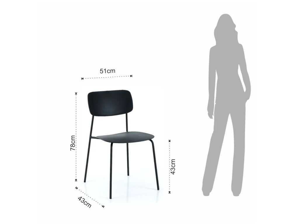 Barva Černá Počet kusů 2 ks Vlastnost Stohovatelná Šířka 43 cm Výška 78 cm Hloubka 51 cm Váha 4 kg Nosnost 114 kg Výška sedáku 43 cm Hloubka sedáku 41 cm Šířka sedáku 43 cm Výška zadní opěrky 35 cm Materiál Kov , plast Materiál sedáku Polypropylen Dekor Matný Povrchová úprava Lak Materiál nohou Ocel Barva nohou Černá Typ Bez čalounění Péče Čistit vlhkým hadříkem nebo houbičkou, nepouživat agresivní a abrazivní čističe